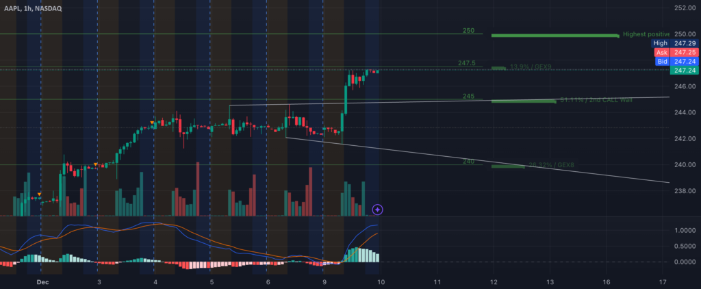 * If AAPL closes above $247.5 with volume, target $250 with an extended swing goal near $255.