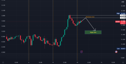 Here's a brief analysis of silver:1. Resistance Area: The marked resistance zone is near the price level of 32.265. Price action indicates potential selling pressure at this level.2. Target Area: