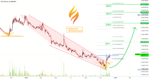 Good morning my fellow trader, I know I shared this chart before but timing is of the essence. PYRBTC (Vulcan Forged) is advancing after recovering from a major low.Timing is