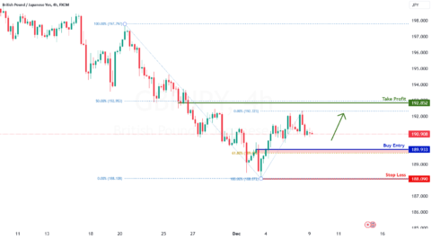 Based on the H4 chart analysis, we can see that the price is falling to our buy entry at 189.93, which is a pullback support close to 61.8% Fibo retracement.Our
