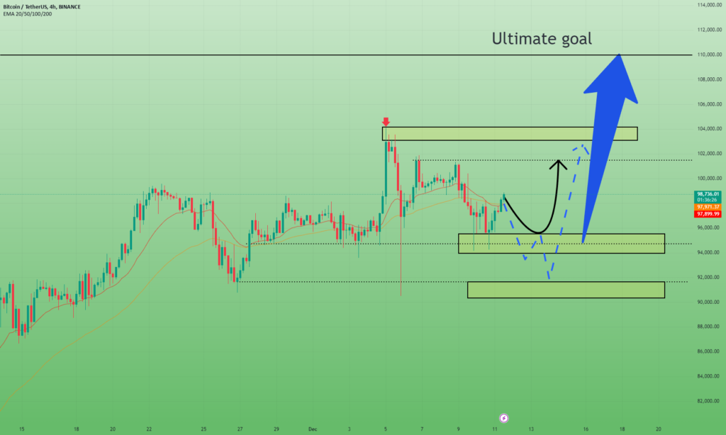 The 4-hour EMA has provided solid support, indicating that buyers are firmly in control. The next critical resistance level lies at $101,050. A breakout above this threshold would signal the continuation of the bullish trend, with the price likely to target the $104,000-$106,000 range. This zone represents a key supply area, but the ongoing momentum suggests BTC has the potential to test and even breach this level.
