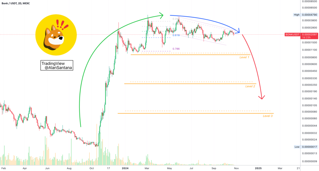 Level 1 support can be tested easily, that would be -50% for BONKUSDT. The other two, I don’t know, but the market has been consolidation for many months for a major drop. If level 1 breaks, prepare for the worst.