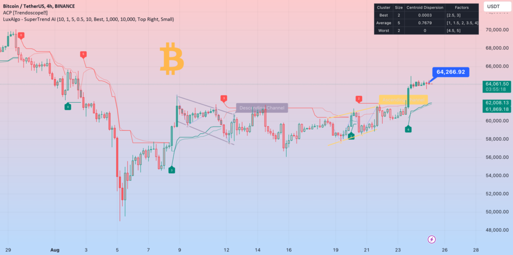 On the hourly chart, the rate of BTC is in the middle of the narrow channel between the support of $63,676 and the resistance of $64,460. If the rise continues to the upper line, one can expect a breakout followed by a blast to the $65,000 area.