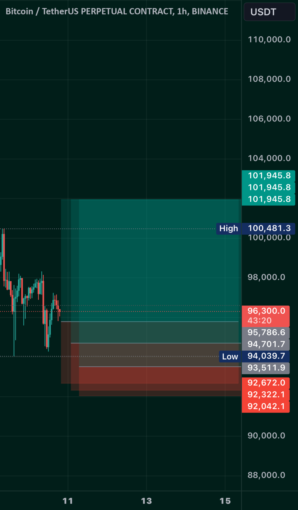 Bitcoin long position targeted at the 101k zone, with entry points between 93,500 and 95,000. Stop loss placed below 92,500. This setup is based on a 1-hour timeframe, but the expected move could take up to 48 hours to play out. Remember, the entry points, stop loss, and take profit levels are just suggestions – feel free to adjust them to fit your own trading strategy. Stay vigilant and manage your risk carefully. #Bitcoin #Trading