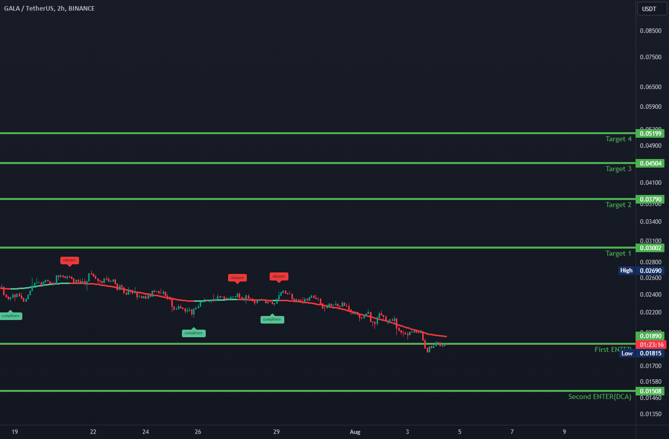 ️ Pair: GALAUSDT Direction: Long Leverage: Cross 5X - 10X - 20X Entry 1: $0.01830 Entry 2 (DCA): $0.01500 Target 1: $0.03200 (I recommend selling 20-30% of your position) Target