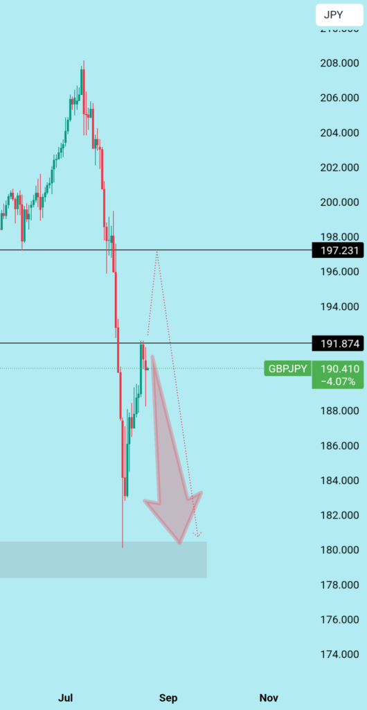 – The pair has broken below the key support level of 191.000, indicating a potential downtrend.