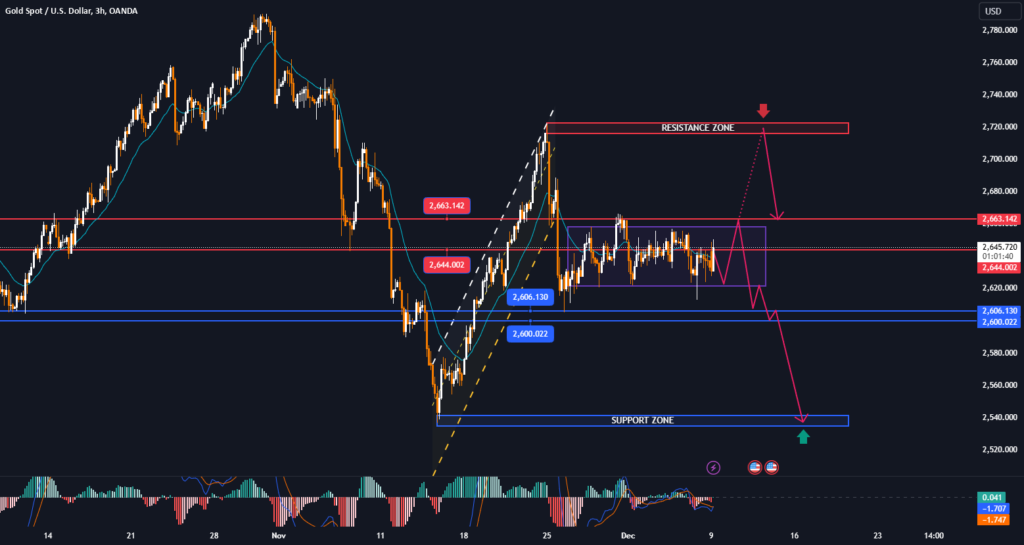Technically, on the H4 chart, we can see that the moving average ema89 is moving sideways, the gold price continues to accumulate sideways in a narrow range. Accordingly, the resistance level to pay attention to is around the 2720 mark, the support level to pay attention to is around the 2535 mark. Gold prices will create a clear trend when breaking through these two resistance levels.