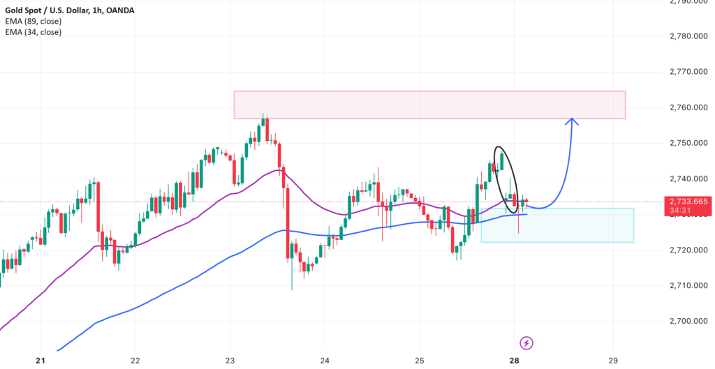 Based on the chart and the current situation, I see gold prices are creating a gap and tending to rise to close that gap. This may reflect the cautious sentiment of investors ahead of the release of important US economic data this week, including GDP, unemployment rate, consumer confidence index and some other important indicators on the labor market.