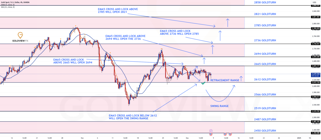 This is now the 4h chart that we shared on Sunday and as you can see the retracement range was tested to perfection today, clearing 2612 bearish target, followed with the bounce just like we stated, completing the week with a bag full of pips.