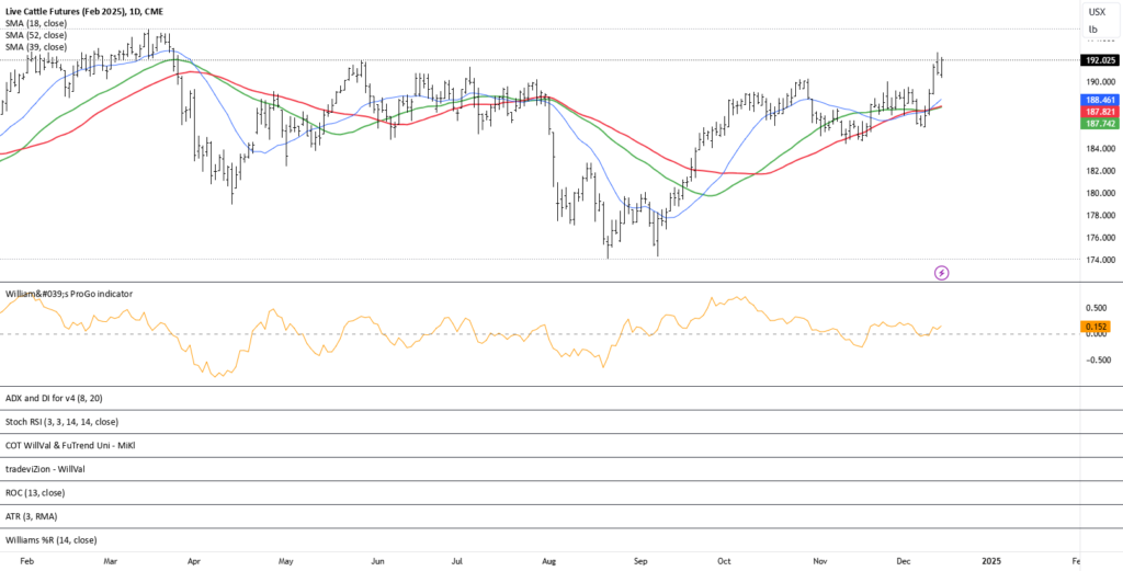 Seasonal tendencies suggest Live Cattle typically trends upward until February.