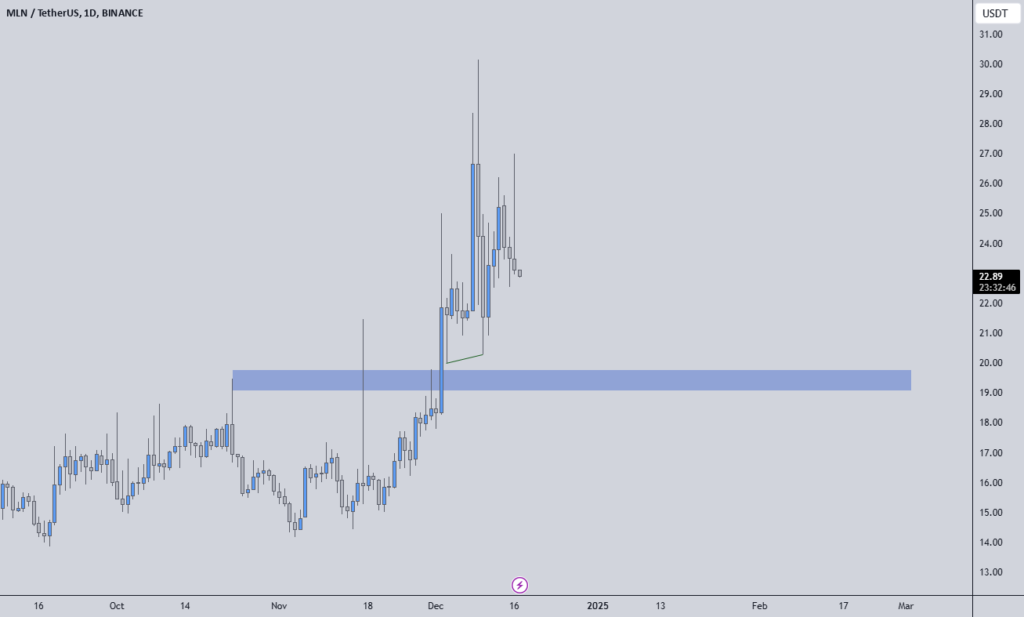 MLNUSDT has observed an impressive 330% increase in volume, indicating a notable rise in market activity. Despite this surge, buyers have not yet stepped into the market, which makes the current price movement uncertain.