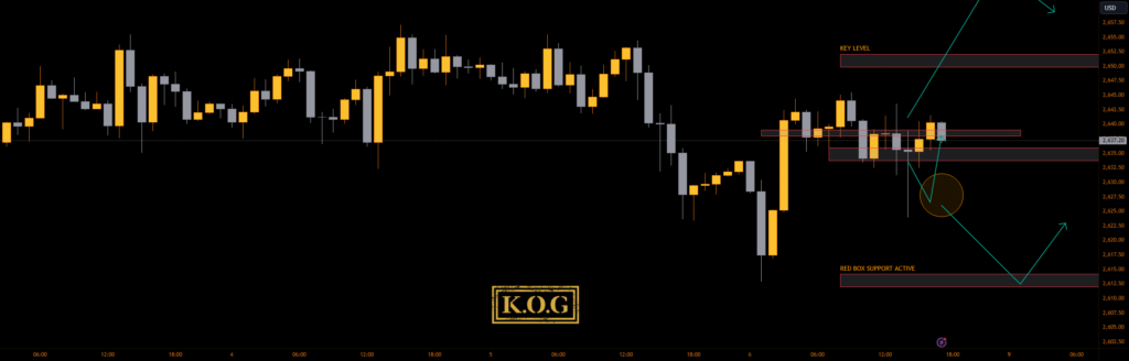 Resistance above sits at 2642-5 which needs to hold in order to go lower. Otherwise, support 2630 again is in play giving us the potential range. If there is a late session move, keep an eye on the key levels! Red box levels also working well.