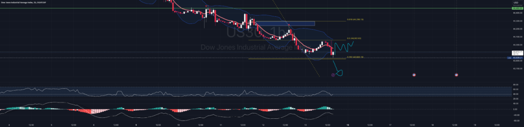 Resistance Zone: Between the 50% (44,062.63) and 61.8% (44,299.10) Fibonacci levels.