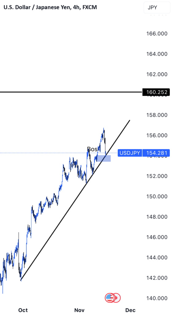USD/JPY is likely to continue rising as the U.S. economy shows strong growth, supported by robust data such as high GDP growth, low unemployment, and resilient consumer spending, which strengthens expectations for the Federal Reserve to keep interest rates higher for longer, while the Bank of Japan maintains its dovish monetary policy. Key upcoming U.S. economic releases, such as the Non-Farm Payrolls, CPI, and Retail Sales, are expected to further reinforce the positive outlook for the USD, keeping upward pressure on USD/JPY.