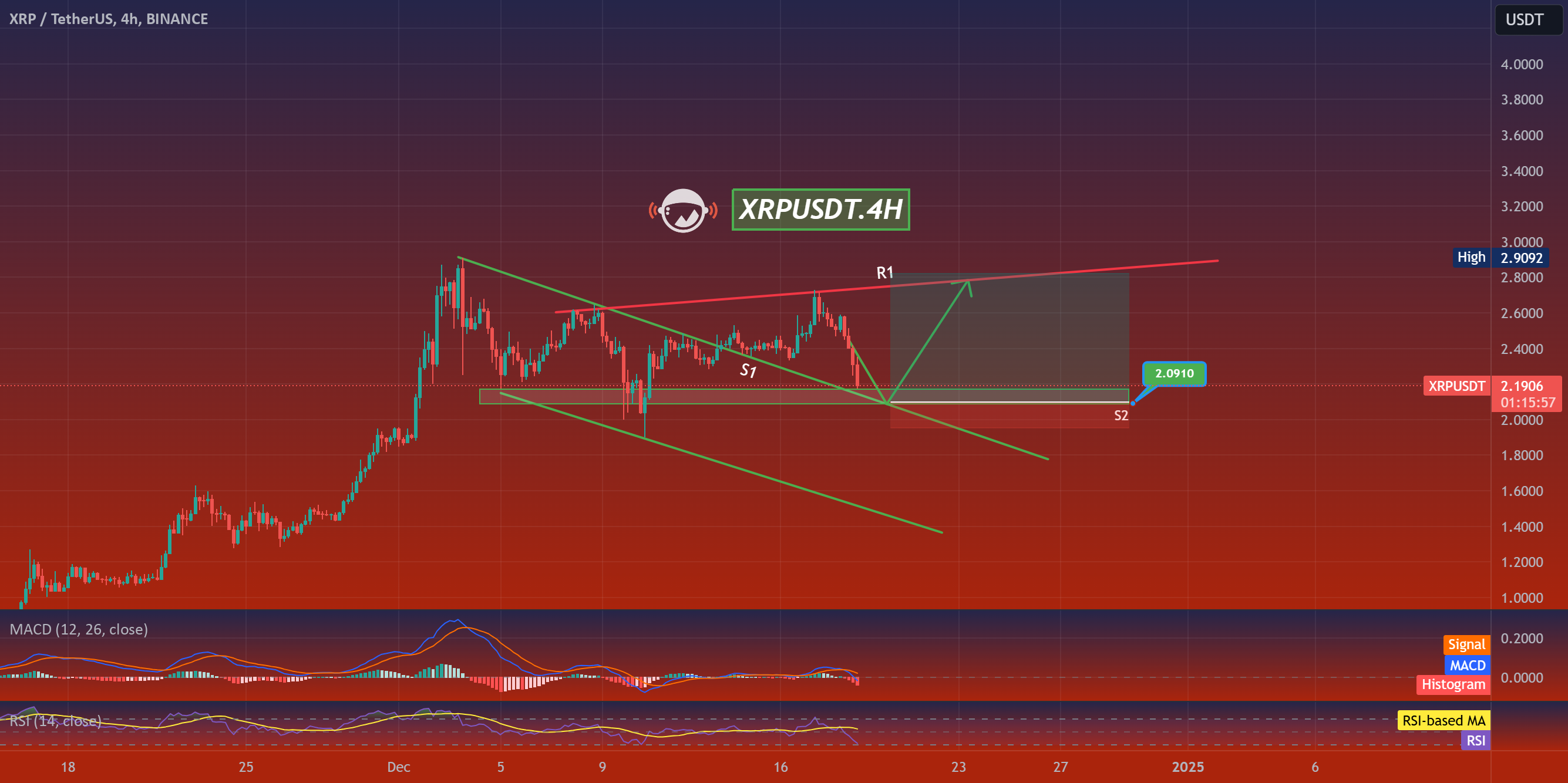 This analysis provides a comprehensive look at the XRP/USDT pair based on the 4-hour chart data. We aim to evaluate the current price dynamics, identify critical levels, and provide an informed forecast based on the observed technical indicators.